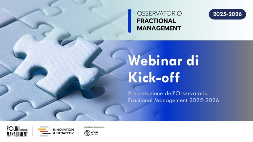 L’Osservatorio Fractional Management del Politecnico di Milano, in collaborazione con YOURgroup, nasce per promuovere la diffusione del Fractional Management come leva strategica per la crescita e la professionalizzazione delle piccole e medie imprese italiane. L’Osservatorio si propone come punto di riferimento per imprese e manager interessati a esplorare modelli di gestione flessibili e ad alto valore aggiunto. Durante il webinar di lancio saranno presentati: